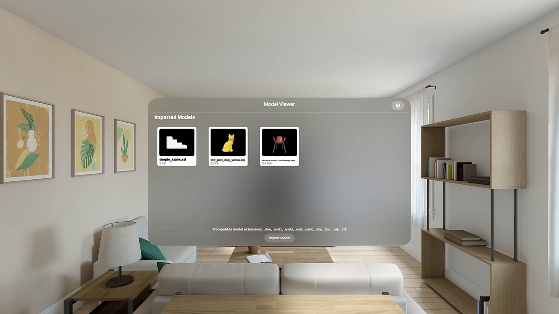 3D Model Viewer allows you to view compatible 3D Models using your Apple Vision Pro.