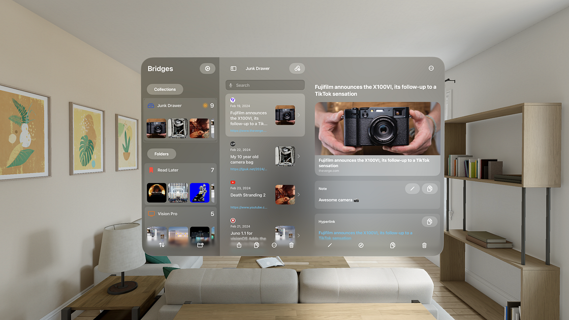 With Bridges saving links is easy and fun. Bridges is built by one person and aims to give you more time back by reducing tedious tasks.