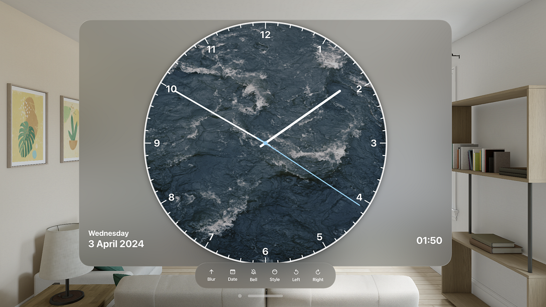 Decorate your Vision Pro headset with Desk Clock Widget Best for getting Aesthetic Look to your Home Screen wall. It's a free app.