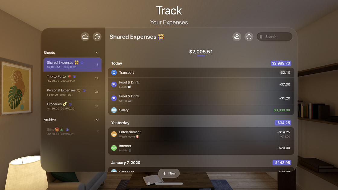Expenses has been crafted to keep track of your spending effortlessly, with useful features in a simple, intuitive interface. And with iCloud, it’s easy to keep all your expenses in sync across your devices and collaborate with others using sharing.