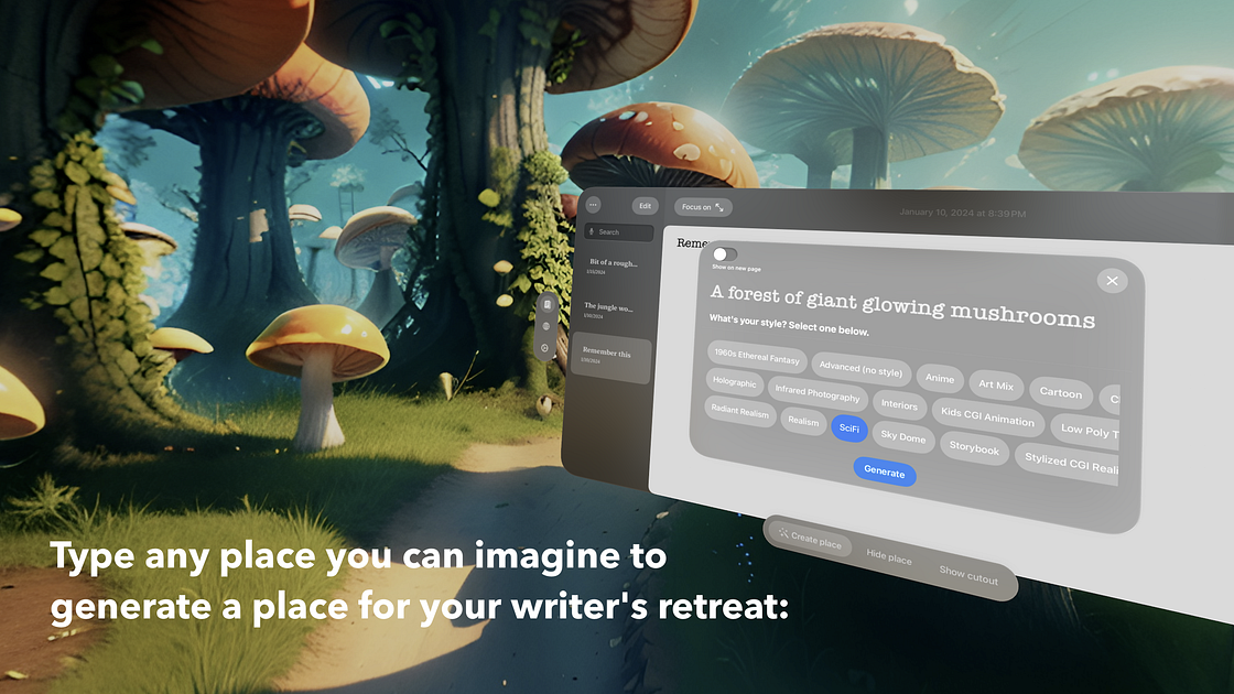 Generate any place with AI. Feel productive; feel at ease; feel awed.