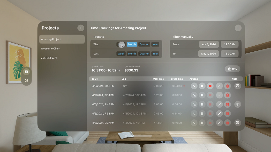 FreelanceKit offers an affordable, easy-to-use time tracking solution that feels right at home on your Apple devices. Built with SwiftUI, this app is intuitively designed to ensure a smooth, native experience across Mac, iPhone, iPad, and Apple Vision.