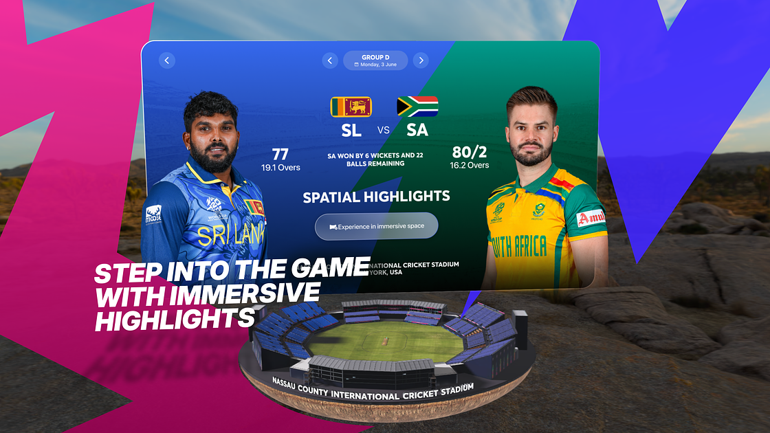 Feel the intensity and excitement as you watch every highlights with real-time data visualizations and spatial sound design. Leveraging the power of spatial computing, ICC Immersive transforms every delivery, every hit, and every crucial play into a captivating experience that transcends traditional viewing.