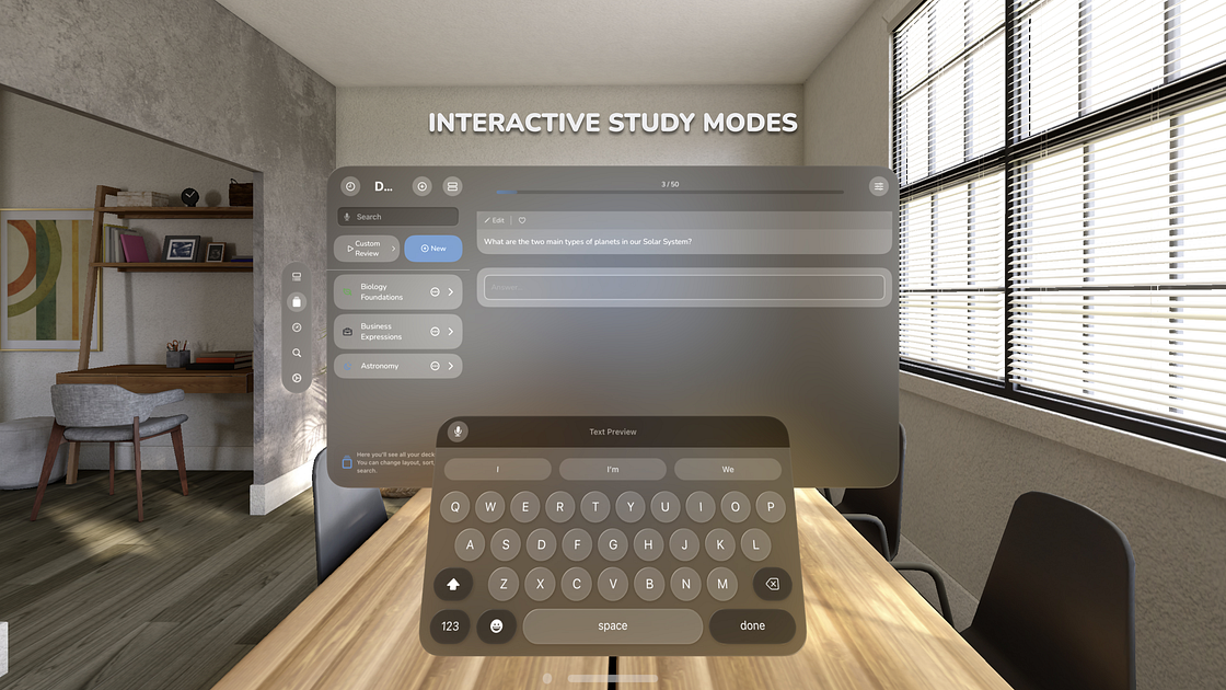 Navigate through a minimalist interface designed for efficient and organized studying made for spatial environment.