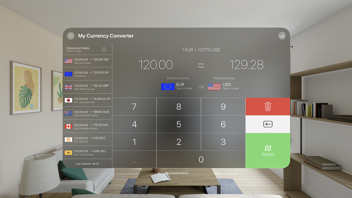 - "Switch" button to invert the currencies.