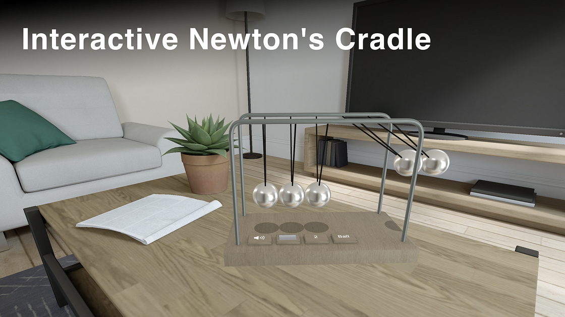 Newtonβs Cradle is a desk toy for Apple Vision Pro. A stunning executive accessory to add some relaxation to your environment without cluttering your physical space.