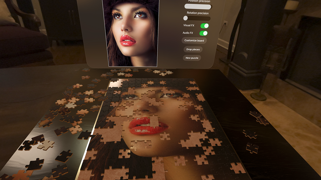 Real Puzzler runs in a low profile volumetric window. You can place the board anywhere, and puzzle while you stream video or listen to music.