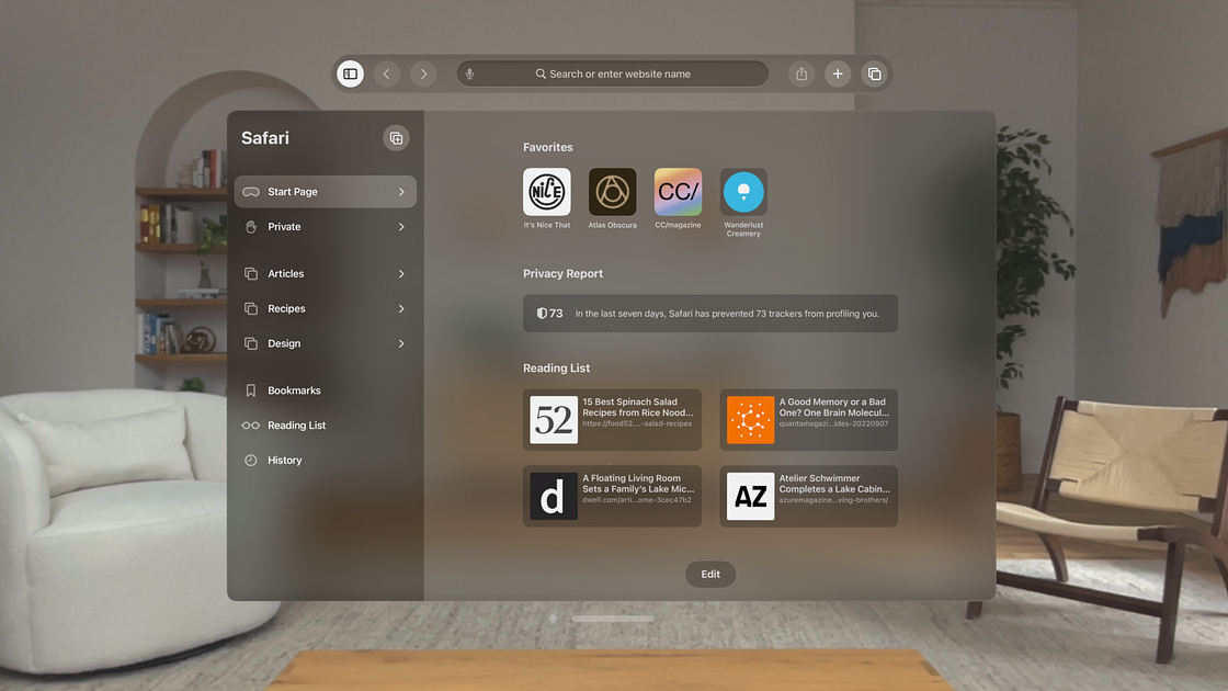 Passwords, bookmarks, history, tabs, and more seamlessly sync across visionOS, iOS, iPadOS, and macOS