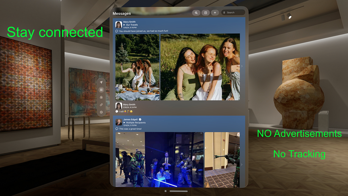 Post messages, pictures, links and videos to individuals or groups. Create your own groups for either personal or business. Great for private groups, private clubs, organizations, businesses, or create an open group and let the world join, it's your choice and all in your control.