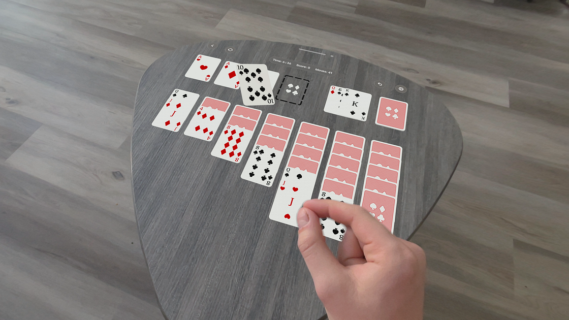 Solitaire, the age-old single-player card game, is here on Apple Vision Pro! Spatial Solitaire puts realism at the forefront of the experience. The virtual cards are 1:1 scale with real playing cards, and the expertly-crafted audio design ensures cards sound real as you move them around. Experience the joy of playing right on your own table, or use the realistic virtual card table provided.