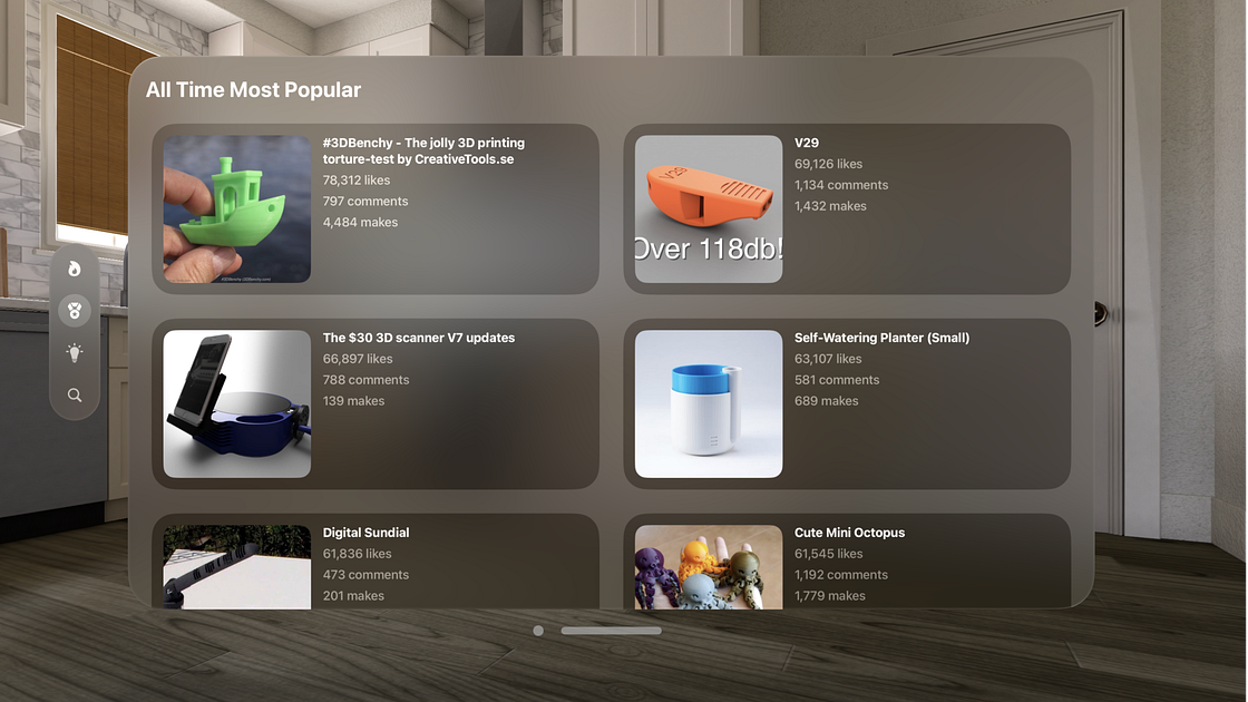 Browse and view STL models from the popular 3D printing website Thingiverse in your own home!