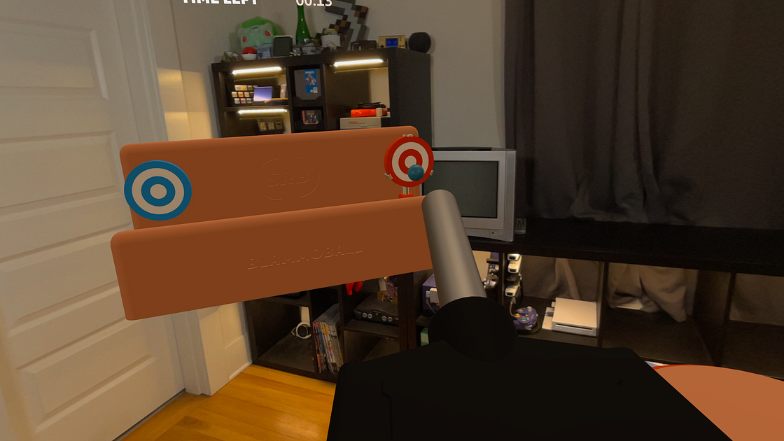 Our virtual pneumatic technology brings the fun of the arcade right to your living room. Pinch with one hand to aim, and the other to fire. How many targets can you break before the clock runs out?