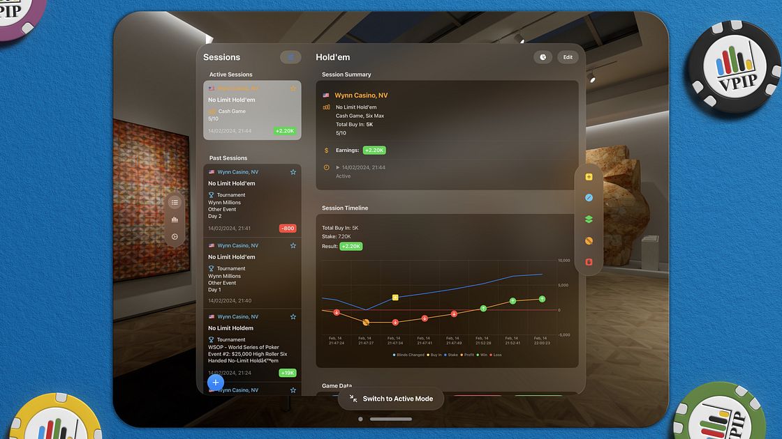 Track and manage your poker sessions directly from your Apple Watch with VPIPβs exclusive premium feature, letting you stay on top of your game without having to pick up your phone.