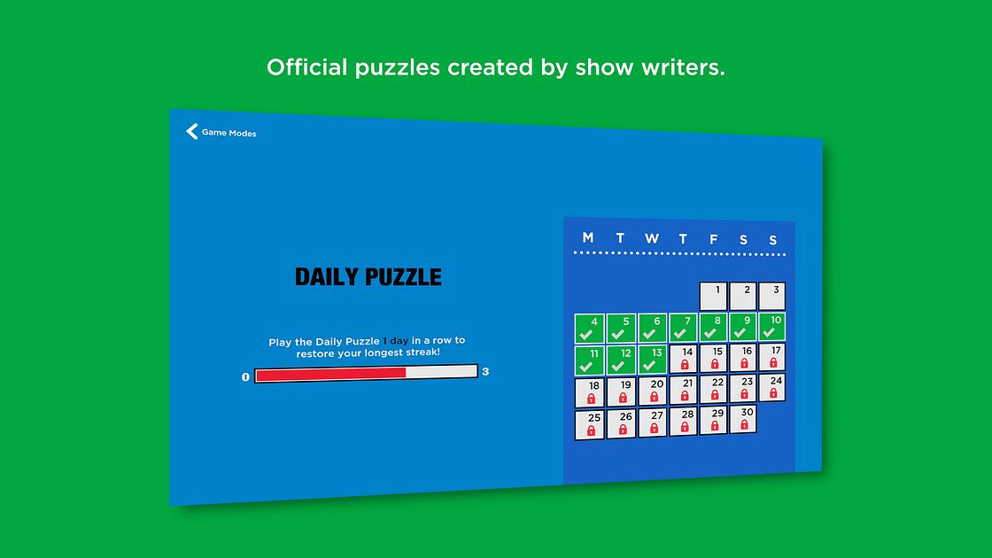 • New Puzzles Every Day: Fresh word games written by the show’s creators, featuring thousands of puzzles across favorite categories like PEOPLE, PLACES, THINGS, and FUN & GAMES.