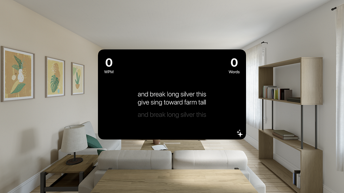 Time to learn the Vision Pro keyboard! Test your typing speed with this sleek little WPM app. Track and test your typing speed with no extra fluff or extra frills. Test yourself and see your words per minute speed. Enable the immersive space mode to take your typing to the galaxy.